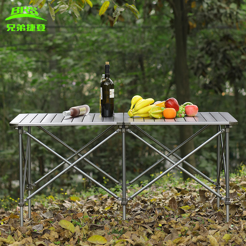 Brother folded aluminum alloy egg roll table outdoor camping can lift and lift long picnic camping easy to accept