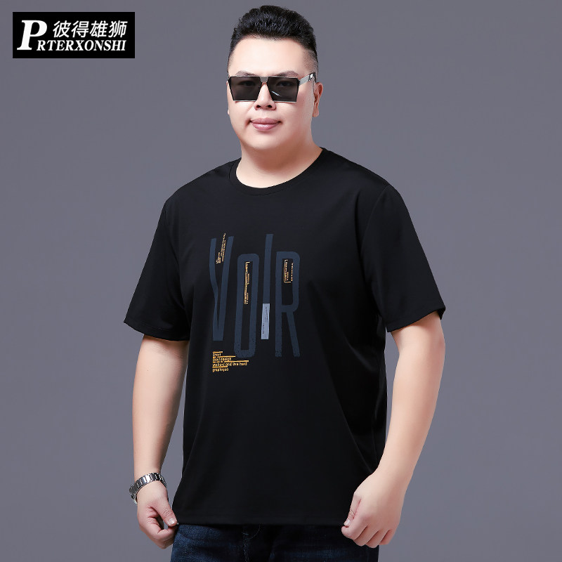 Large size code men's fashion boomers overweight and fatter plus short sleeve t-shirt male summer fattener fat man loose round collar T-shirt