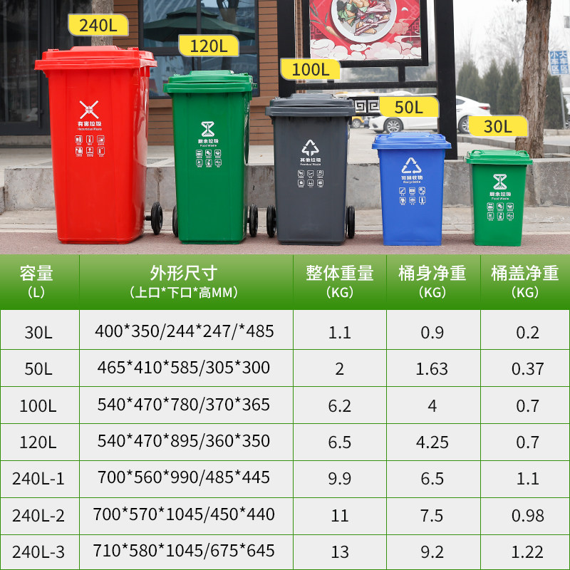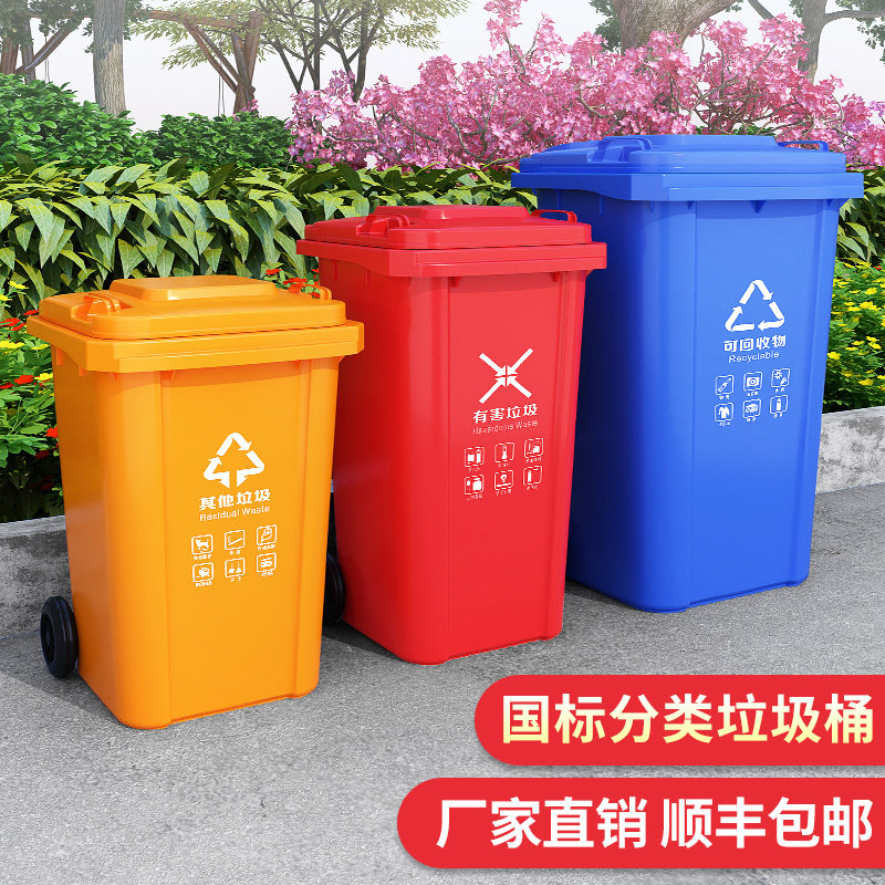 (yellow) 100L with wheels-other garbage (Shun Feng entry) (green) 100L with wheel-kitchen waste (Shun Feng into the household) (blue) 100L with wheels-recyclable garbage