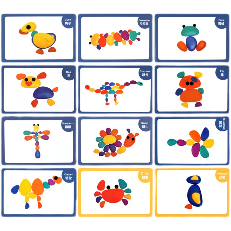 Cobblestone children's building blocks teaching aids soft rubber educational toys to build plastic stacking stacking board games with question cards 3-5 years old