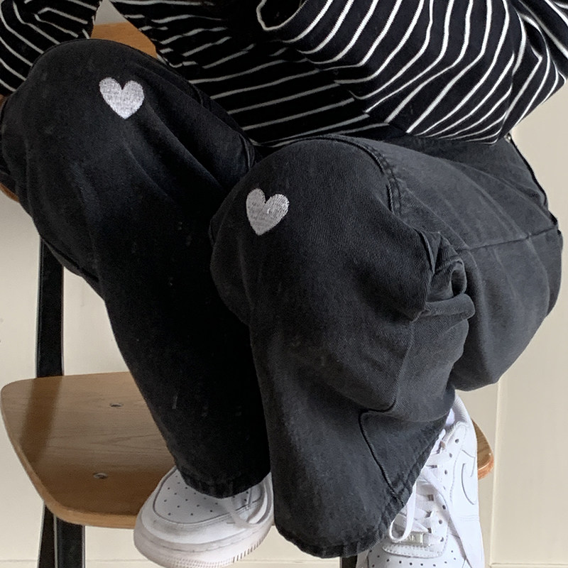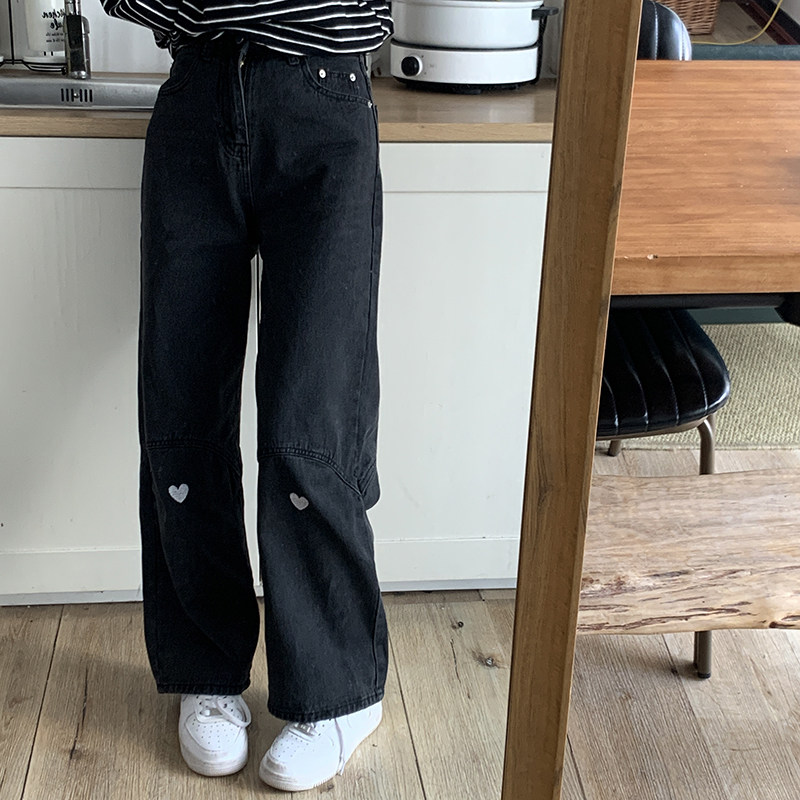 Fat sister plus size love jeans fall new 2022 women's loose high waist straight wide leg pants look thin