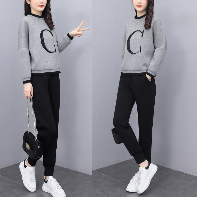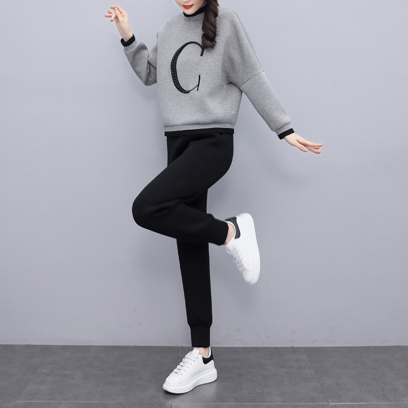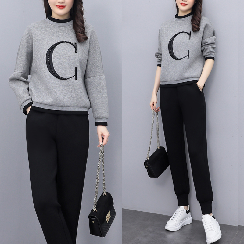 Casual sportswear suits women's spring and autumn 2021 new fashion large size women's women's thick T-shirt two-piece tide brand
