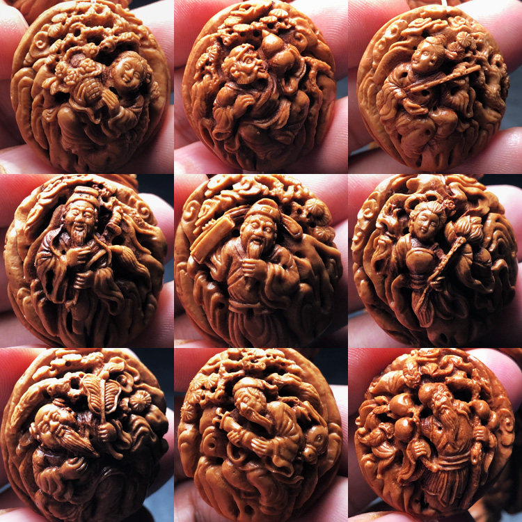 Scenery Eight Immortals Birthday Peach Nuclear Engraving Handstring Weifang Virtuoso Pure Handmade High-end Collectible Class Gift hand string handheld
