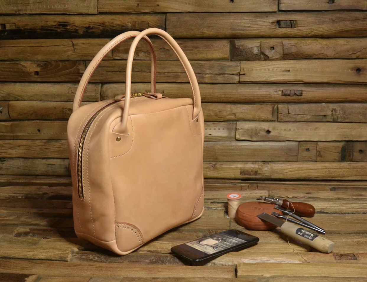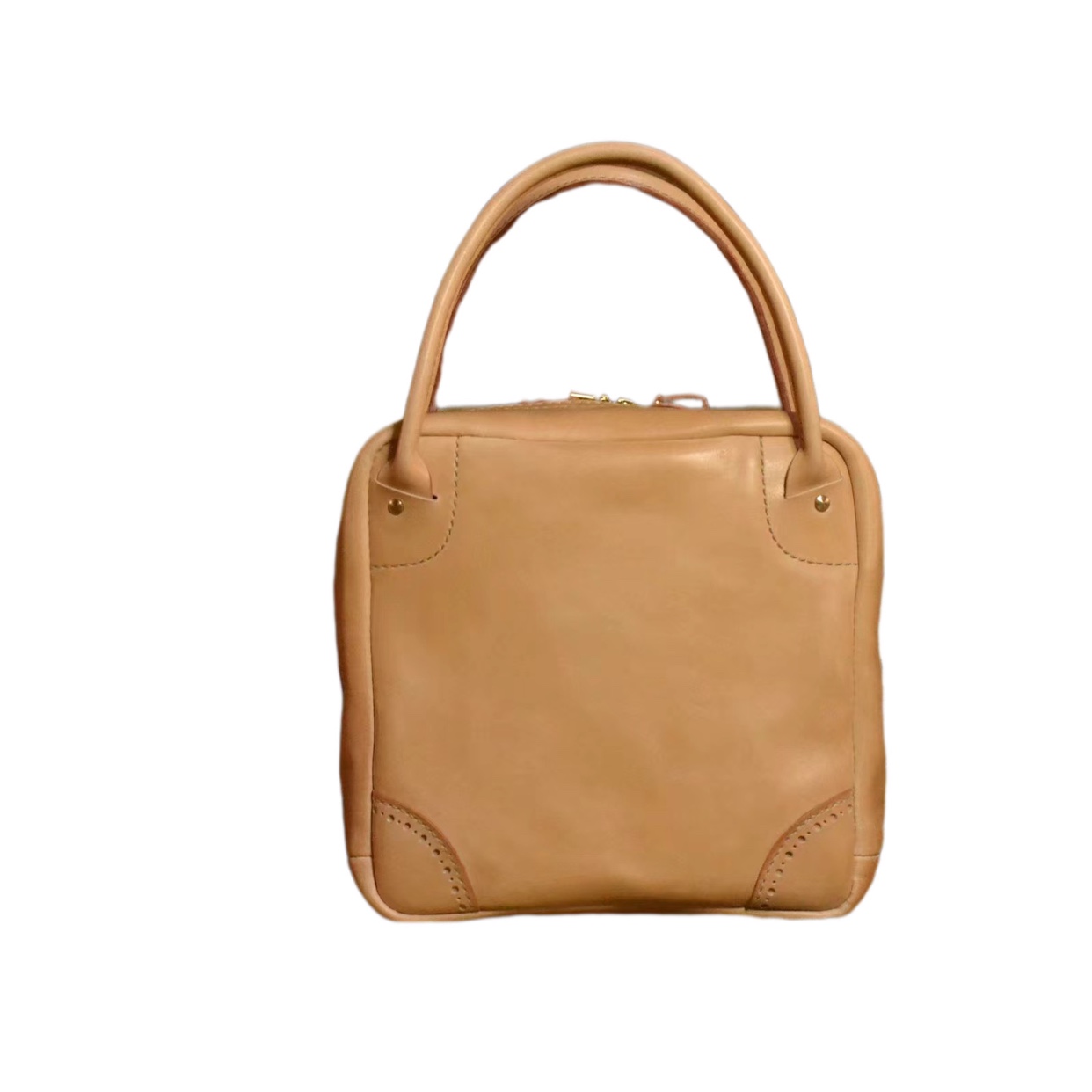 Knife guest 72 handmade custom new Japanese tote wood multifat saddle leather AA grade original color cow leather lady retro small square bag