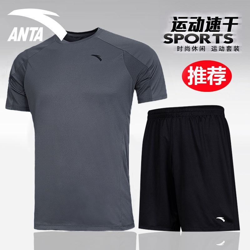 Anta Running Suit Men's Summer Speed Dry Two Sets 2022 New Official Web Flagship Men Casual Sports Suit