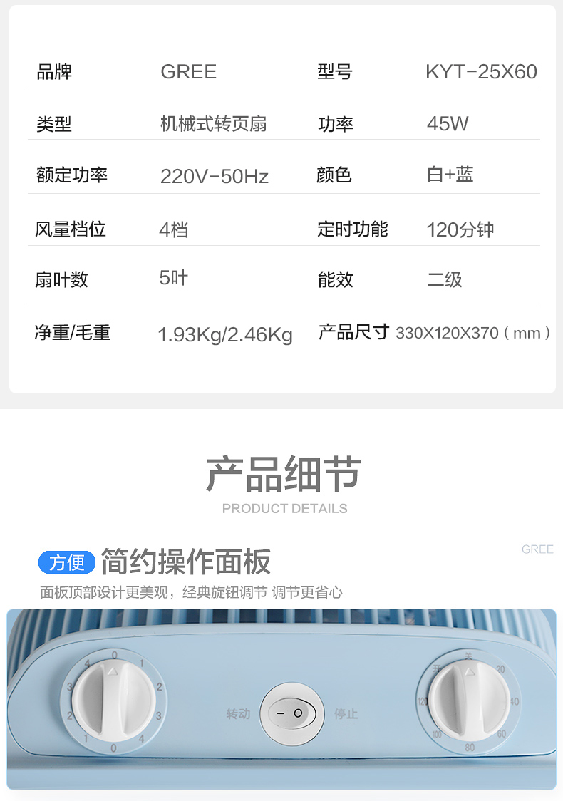 Gree desktop fan dormitory bedroom box fan mute big wind household small lucky fan KYT-25X60