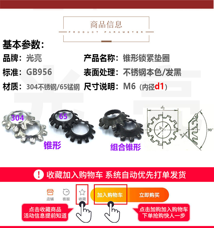 Stainless steel conical lock washer outer sawtooth multi-tooth gasket GB956 12 with countersunk head M4M5M6M8M10M12
