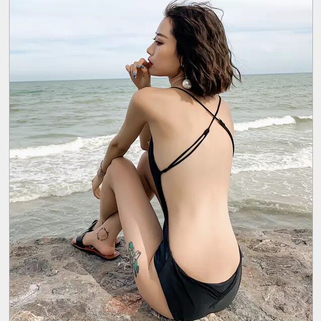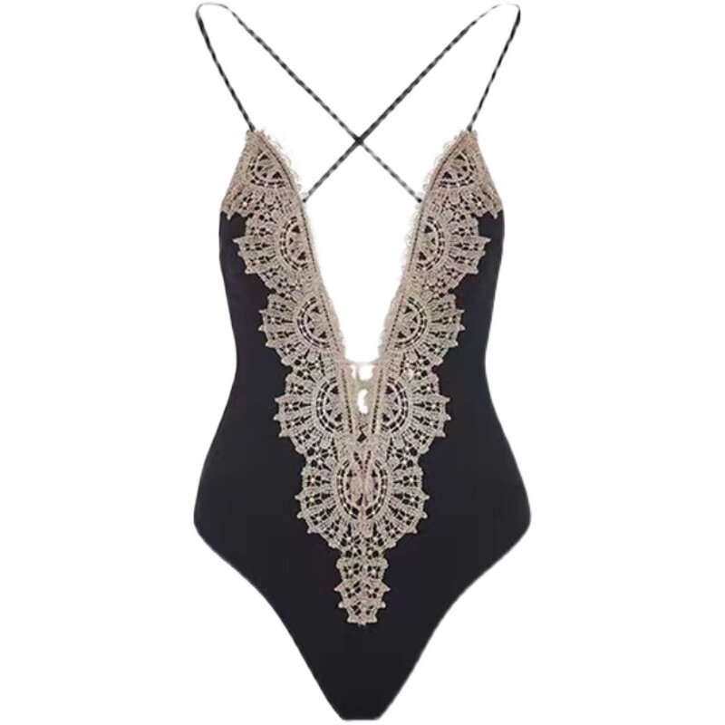 South Korea ins Net red and black lace hot spring swimsuit female sexy belly thin resort bikini exposed