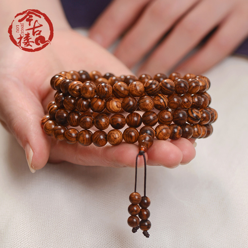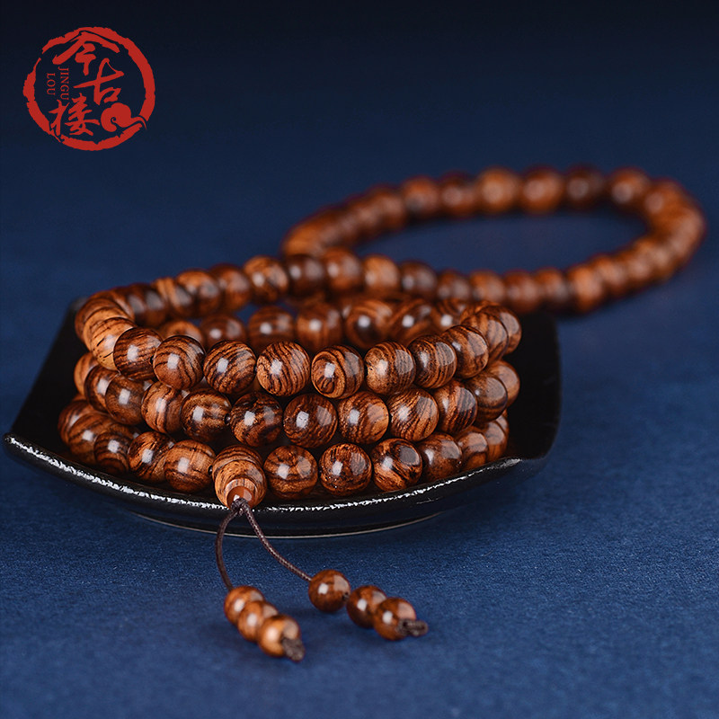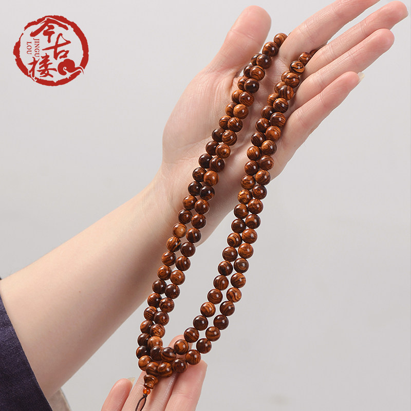 Ancient Lou Haihuang 8mm108 old material Buddha Zhuhai South Huanghuali hand string men's tiger skin pattern multi-circle female rosary