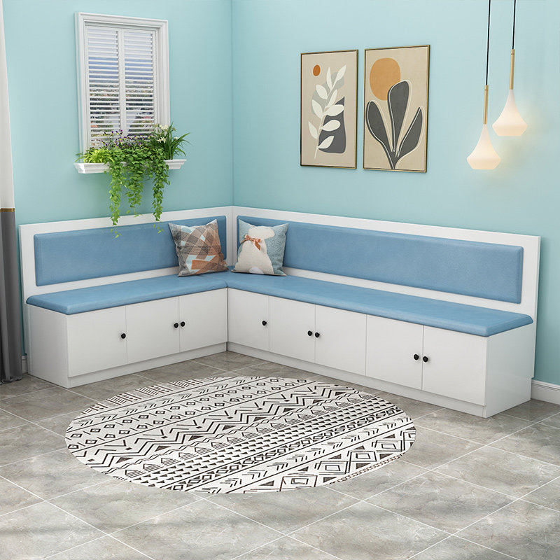 Customized simple small-sized restaurant solid wood storage card seat home dining table and chair combination corner L-shaped card seat sofa