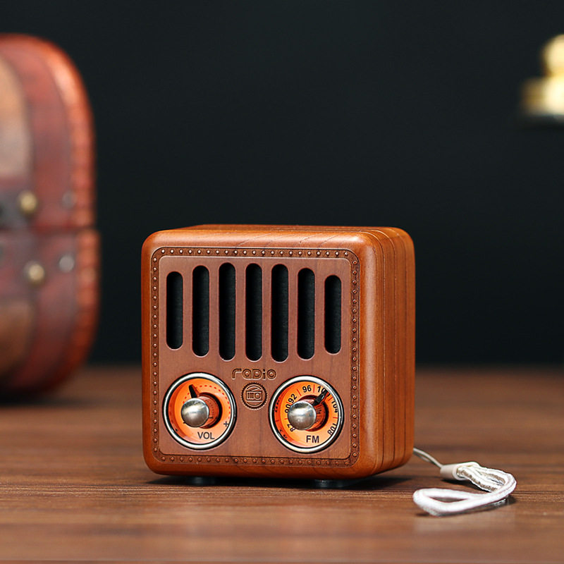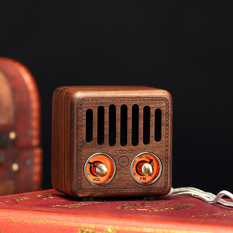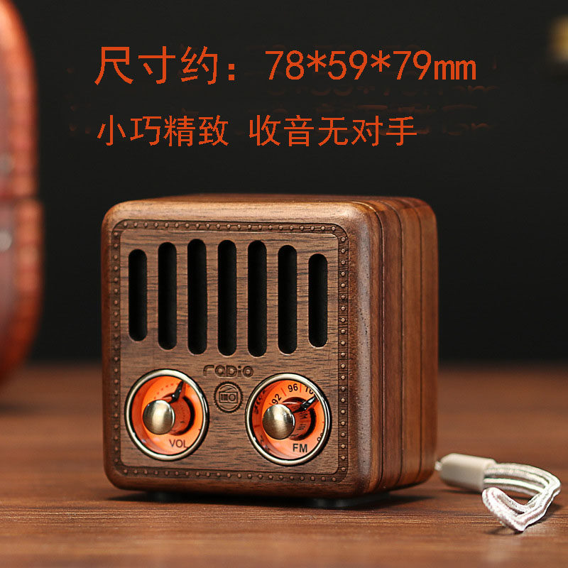 Retro Walnuts Wood Wireless Bluetooth Small Speaker Home Outdoor Portable Mini FM Radio Player Card On-board Phone Computer Woody Small Sound Outside With High Sound Quality