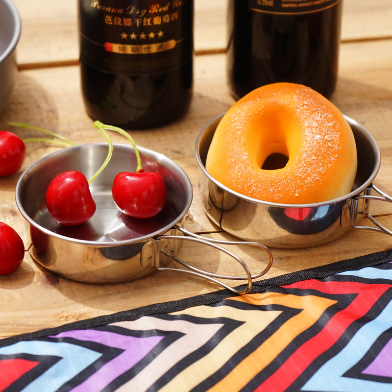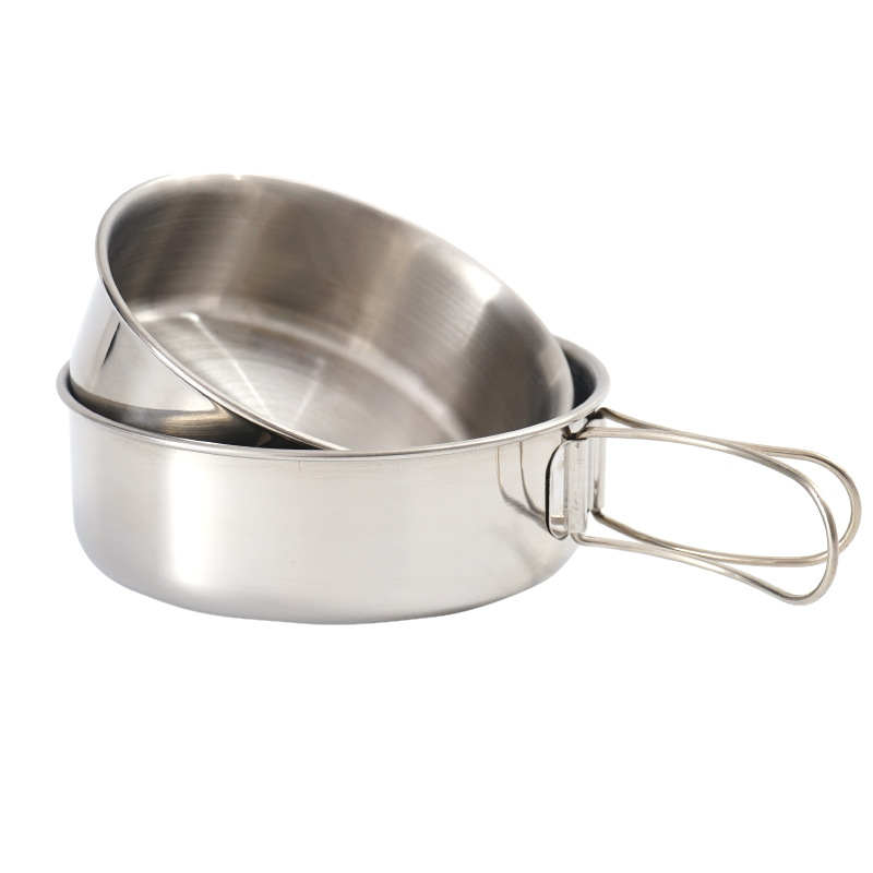 CLS Outdoor Picnic Stainless Steel Cover Bowl Mini-Folded Portable Bowl Mountaineering Scapegoat Camping Cutlery 2 pieces