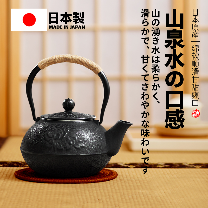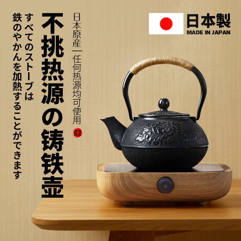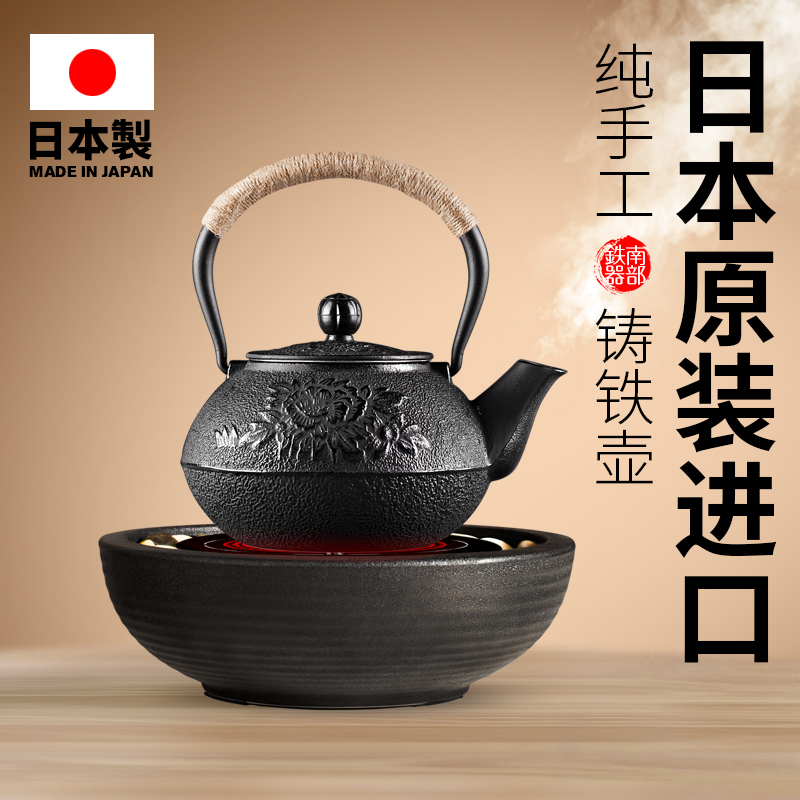 Japan imported iron pot peony pure hand cast iron pot electric pottery stove boiling teapot boiling tea stove kettle household set