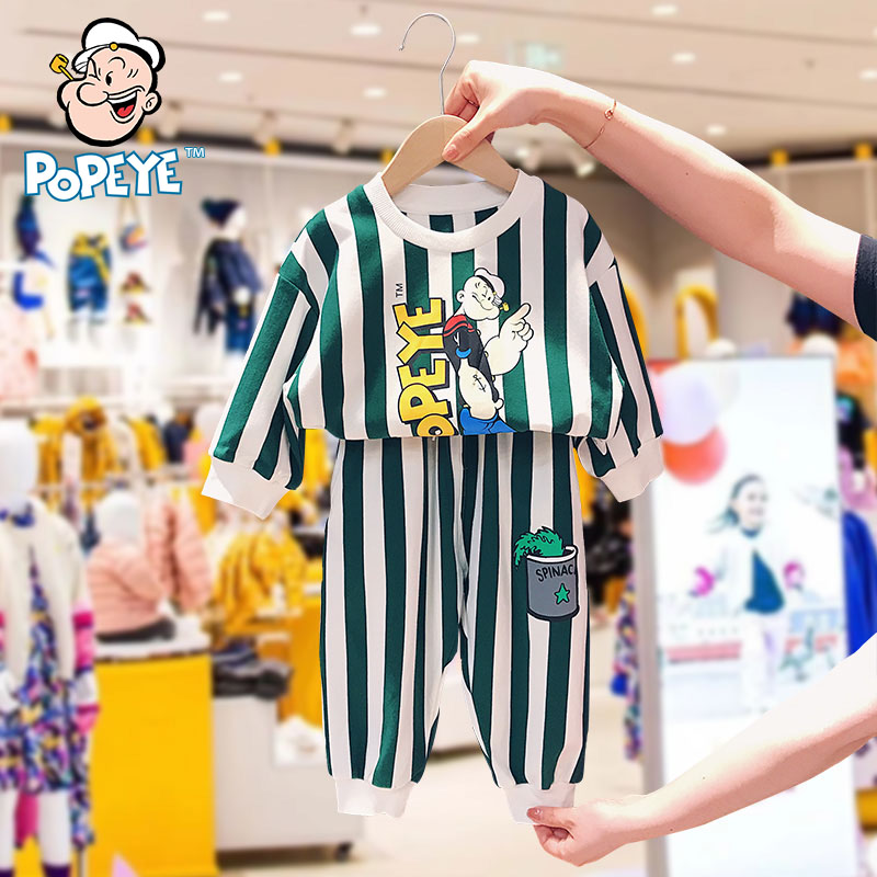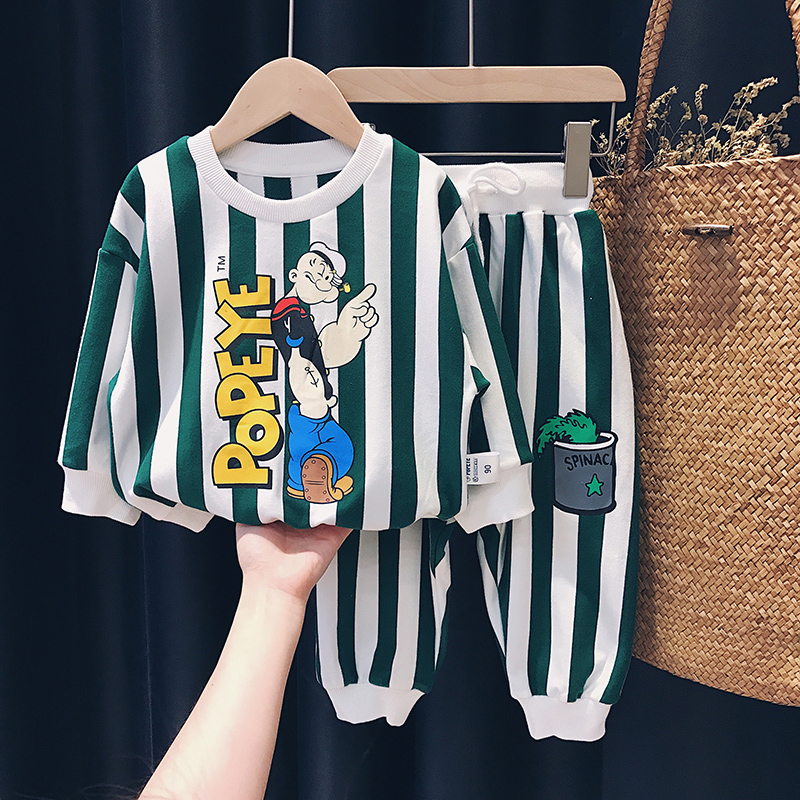 Vigorous sailor POPEYE baby striped suit 2022 new spring dress male and female long sleeve thick cotton T two-piece set
