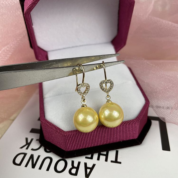Golden Love inlaid with white beaded earrings 12mm golden love inlaid with purple beaded earrings 12mm golden love inlaid with golden beaded earrings 12mm golden loving inlaid drilling peacock green