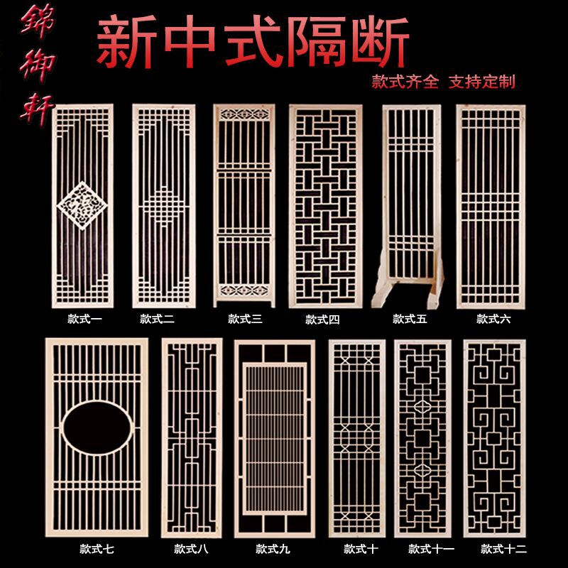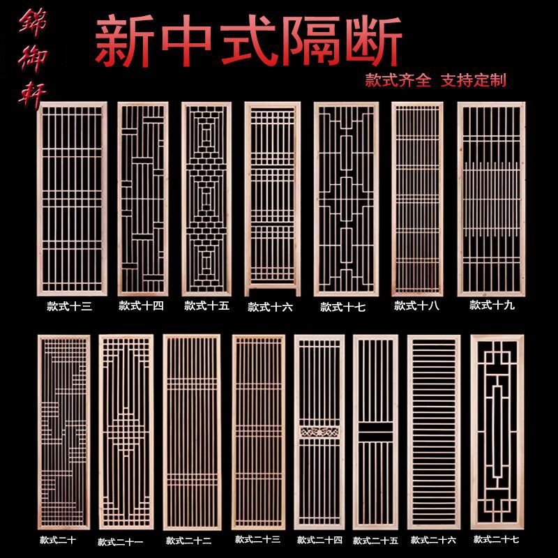 Simple new Chinese style entrance partition solid wood screen background wall Modern lattice hollow Japanese door and window seat screen