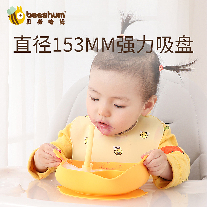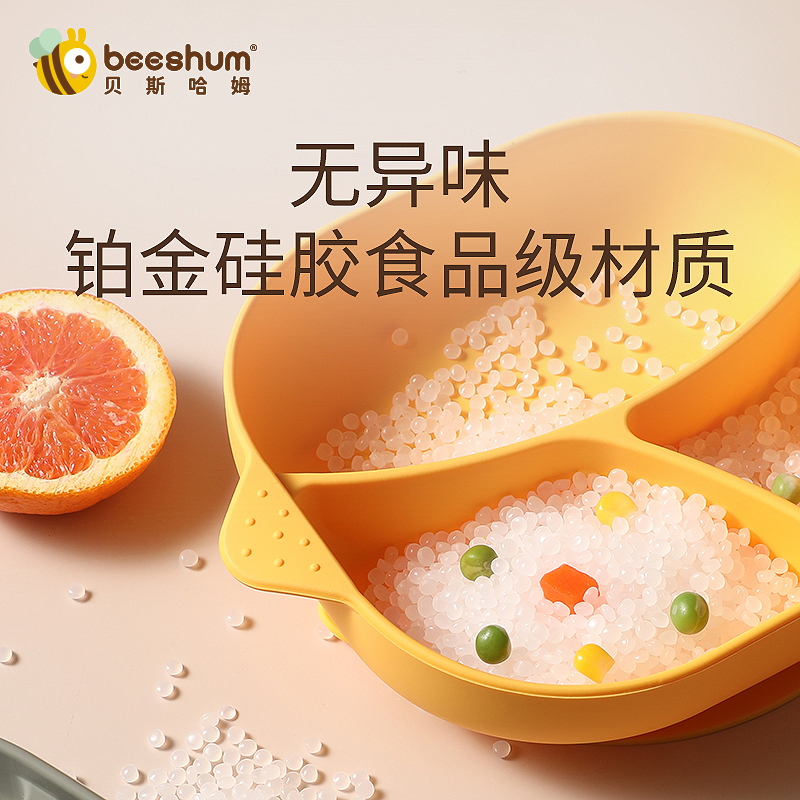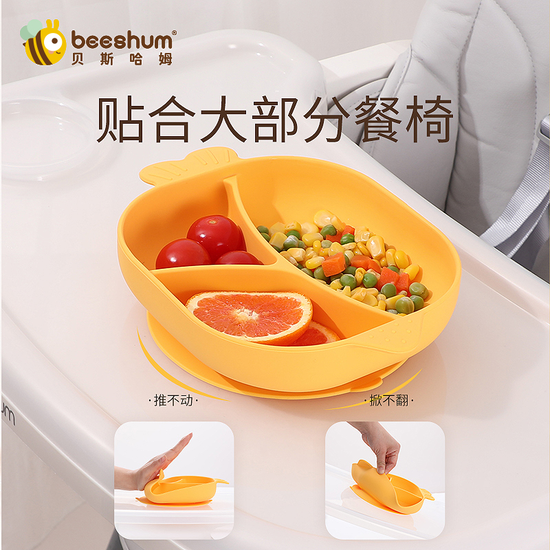 Beeshum Beth Hamm Baby Fish Dinner Tray Baby Suction Cup Silicone Compartment Disc Children's Food Supplement Bowl