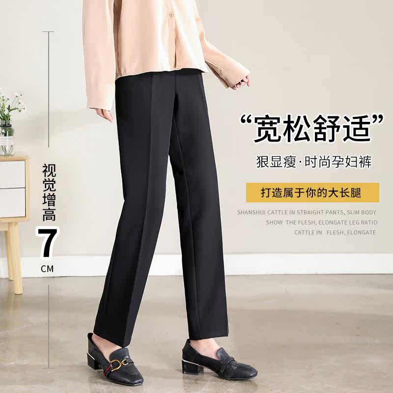 Pregnant woman Western pants Spring autumn outwear Western dress pants to work Straight Drum Tooling Black Positive Summer Spring Thin working pants