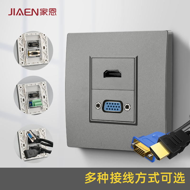 Jiaen wall TV wall high-definition multimedia socket panel HDMI with VGA video welding-free straight-in extension