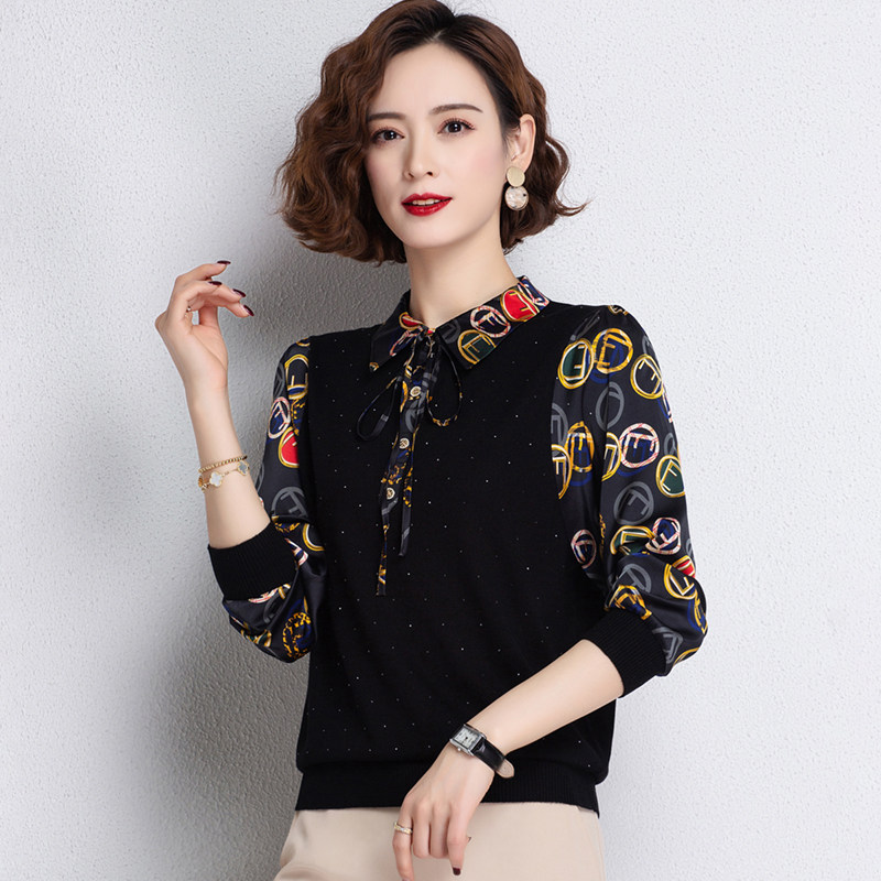 Lapel bottoming shirt women's 2022 spring and autumn new thin loose knitted sweater ninth sleeves mother fake two-piece top