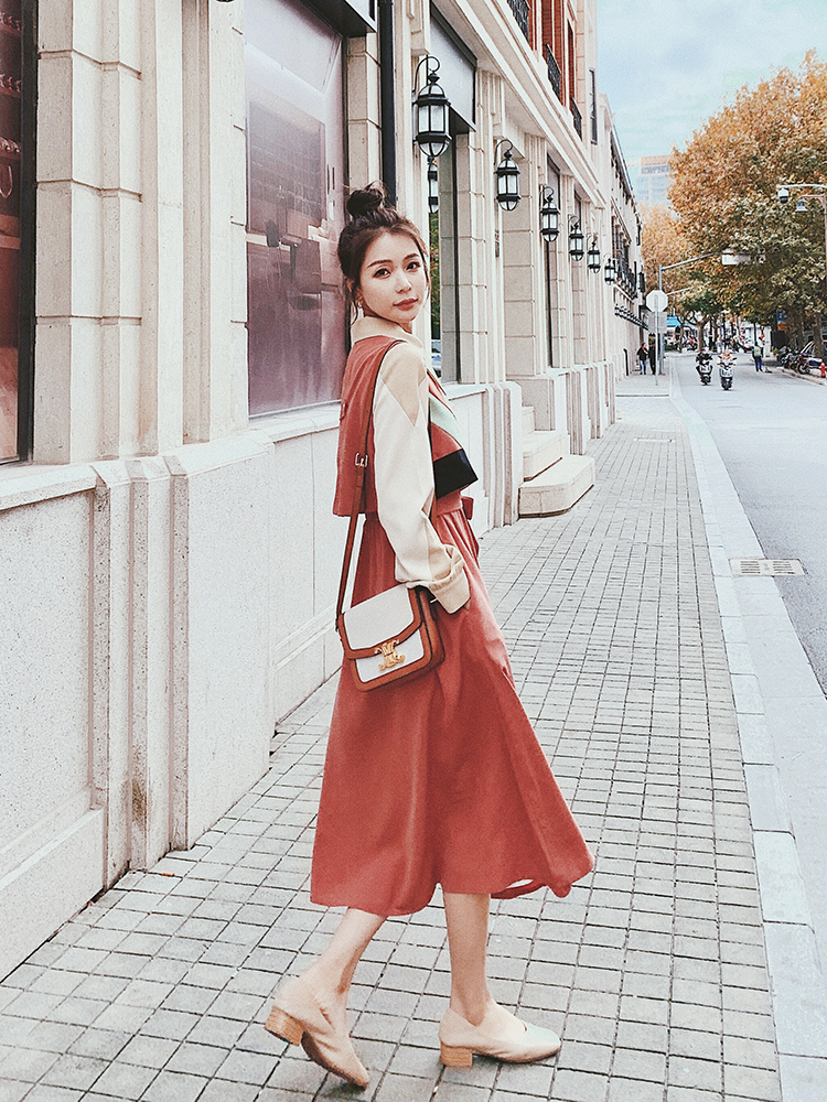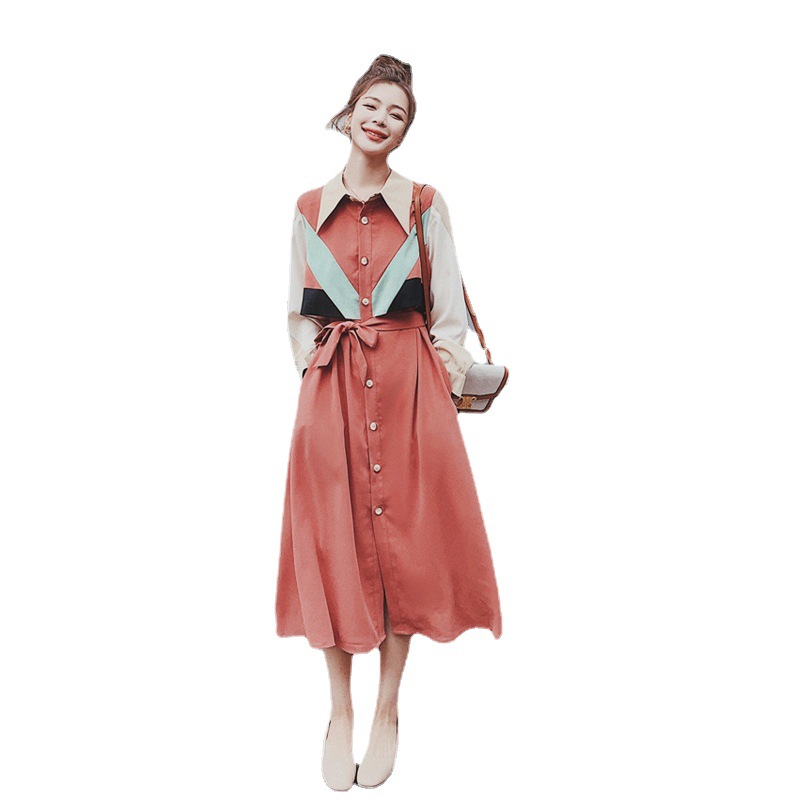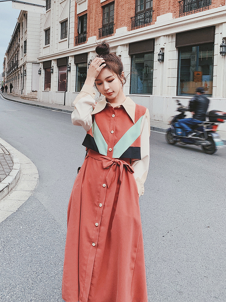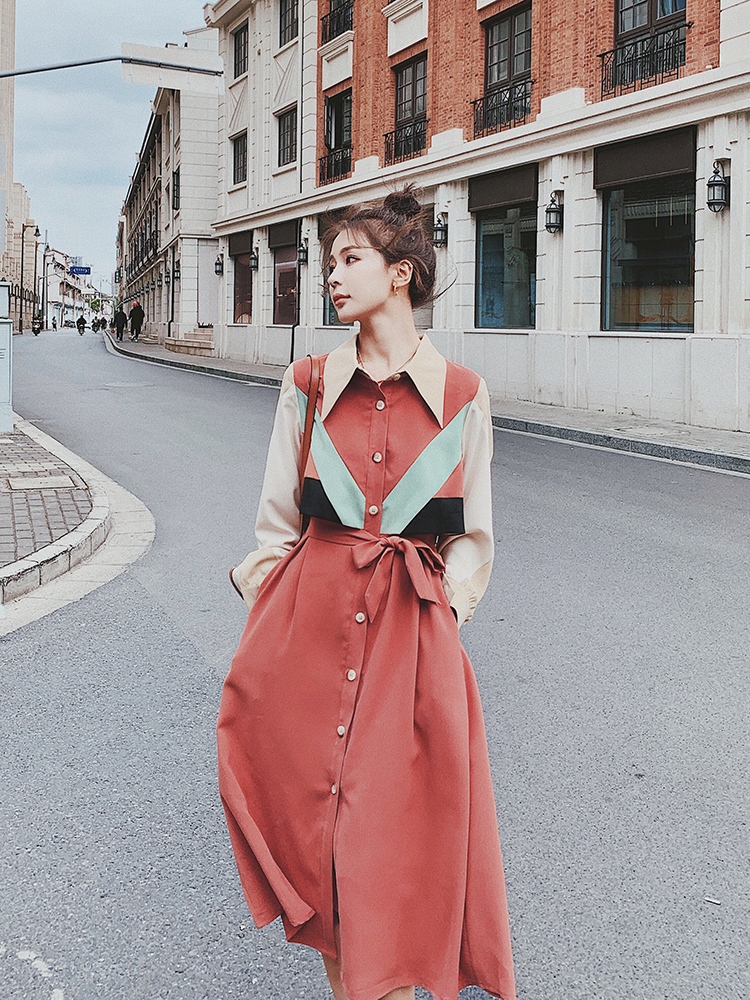 Lecea Alice French niche dress 2022 autumn new style contrast color waist and thin temperament shirt skirt
