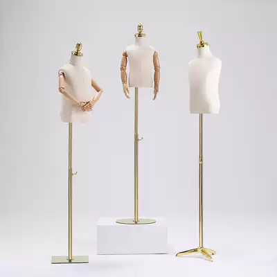 Children's model props half-body window display rack men and women model rack Children's children's clothing store golden head cover dummy table