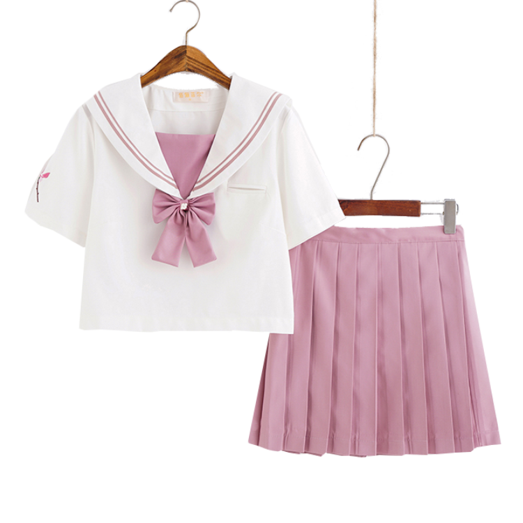 Pink jk uniform summer suit full skirt blouse shirt short-sleeved navy wind Japanese summer suit sailor suit