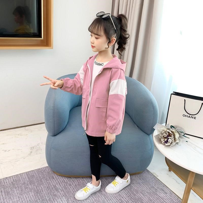 2021 new children's clothing spring autumn girl's trendy splicing jacket CUHK child thin foreign pie casual Korean version jacket