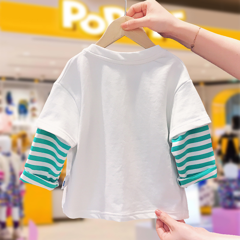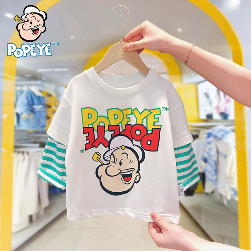 Vigorous sailor POPEYE girl fake two long sleeves T-shirt boy necropolis child 2022 new spring dress child clothing