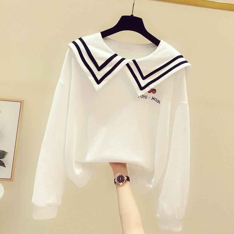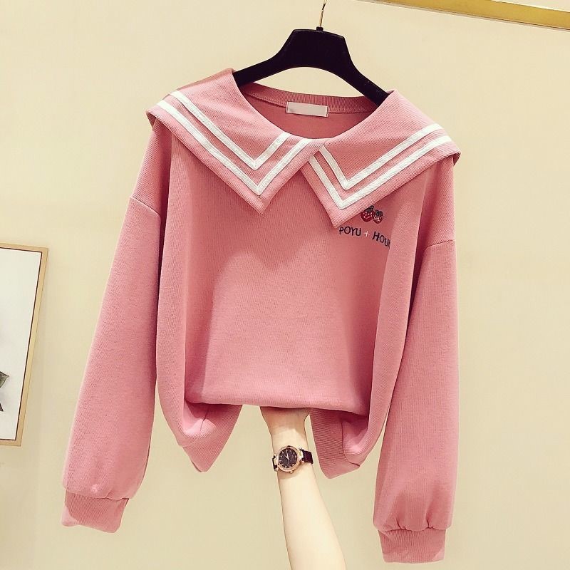 Children's clothing 2021 girls autumn clothing new navy collar pure color casual blouses CUHK Tong Han version loose long sleeve blouses foreign pie