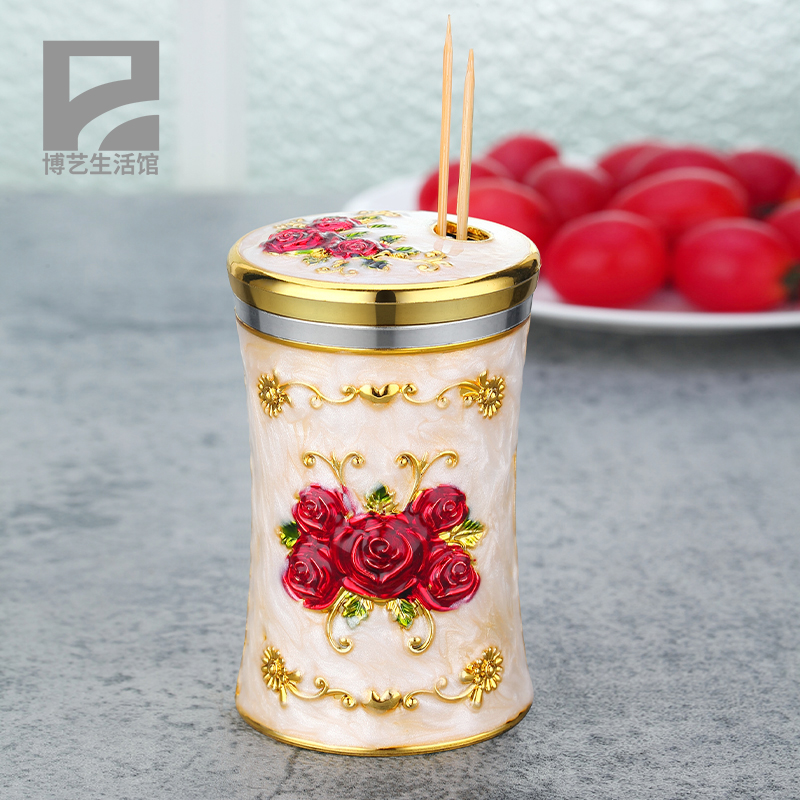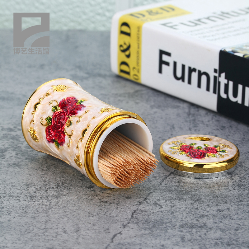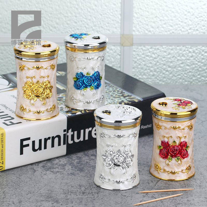 Eurostyle Retro Dental Sign Cylinder Swivel Cover Toothpick Box Creative Living Room Home Personality Cute Portable Toothpick Bucket Gold