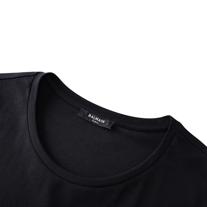 Balmain 21 Spring/Summer Men's Short Sleeve Tee Solid color cotton round neck black shirt with logo print