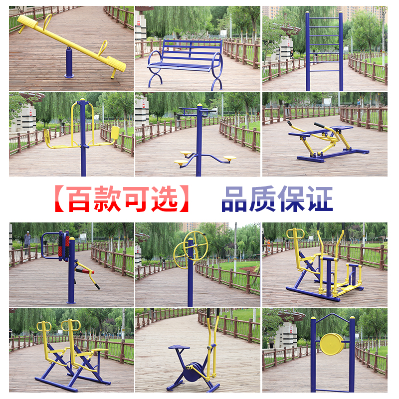 Three-piece set four-piece set A four-piece set B five-piece set A five-piece set B six-piece set A six-piece set B six-piece set C eight-piece set nine-piece set ten-piece set twelve-piece set fifteen-piece set twenty-piece set double stroller (buried model) sitting push pull trainer (buried model) single walking machine (buried model) Tai Chi kneader (buried model) shoulder joint rehabilitation device (buried model) three-person twister (ground version) abdominal muscle board (ground type) single walking machine (ground model) chessboard (ground model) desktop double stroller (ground model)