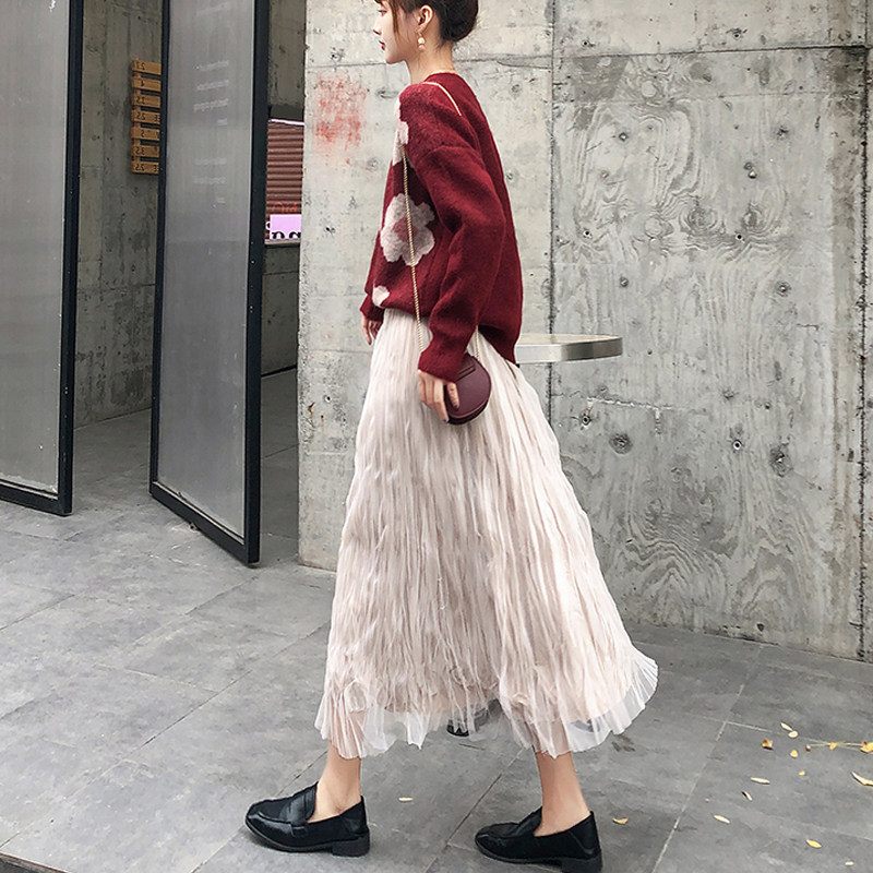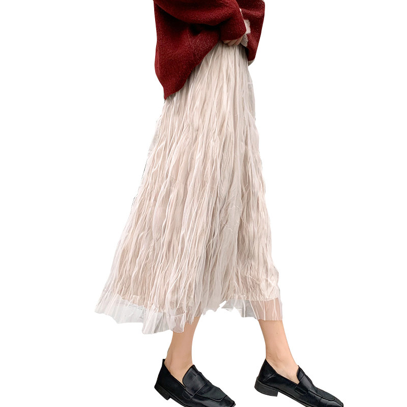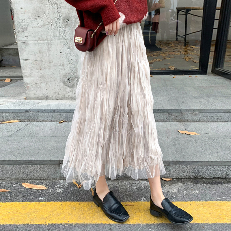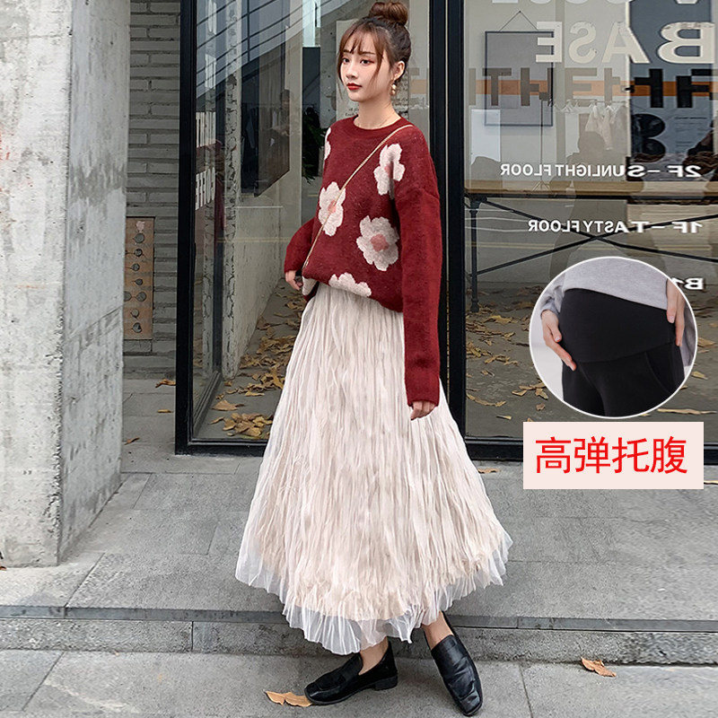 Spring and summer maternity skirt fashion super fairy mesh skirt foreign style net red tide mom pleated skirt 2021 new