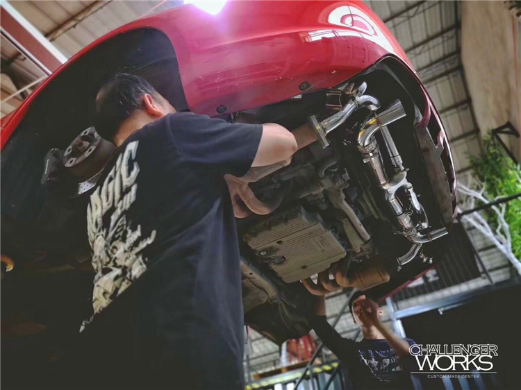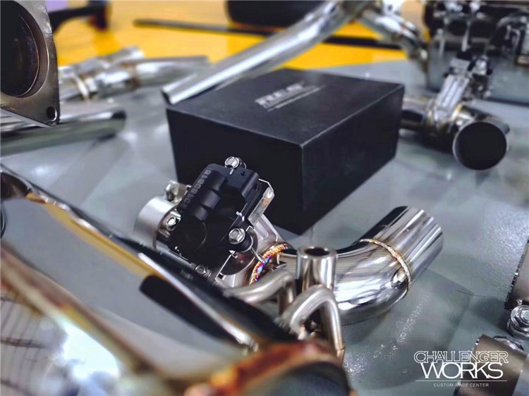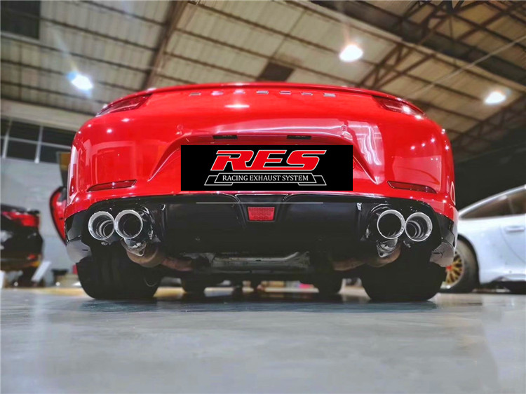 Porsche 911 991 997 modified RES stainless steel exhaust pipe head, middle and tail section sports car sound waves blasting the street