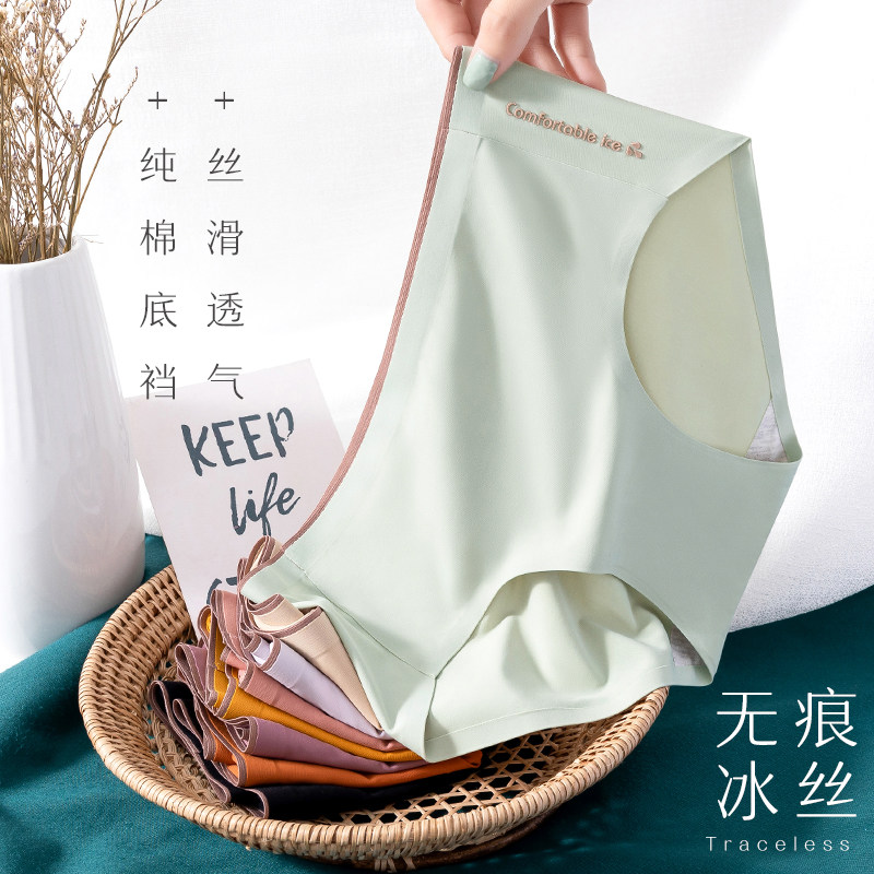 Seamless underwear ladies ice silk mid-waist summer breathable thin section girl antibacterial cotton cotton crotch triangle shorts head
