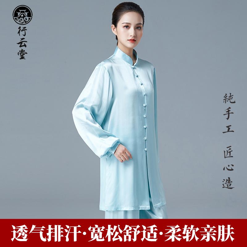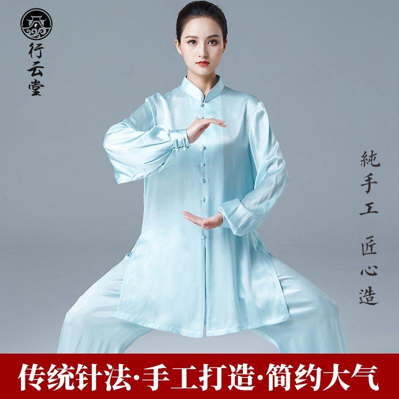 Xingyuntang sky blue mulberry silk heavy silk Tai Chi clothing women's new summer Tai Chi practice clothing spring and autumn men