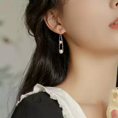 Pearl earrings 2021 New Korean temperament sterling silver earrings female long version of tassel ear clip without ear hole earrings tide