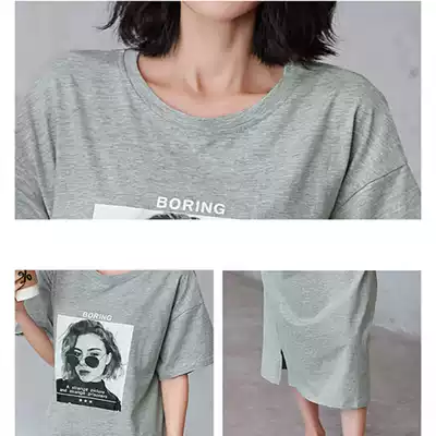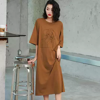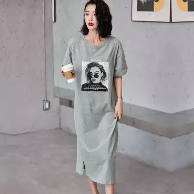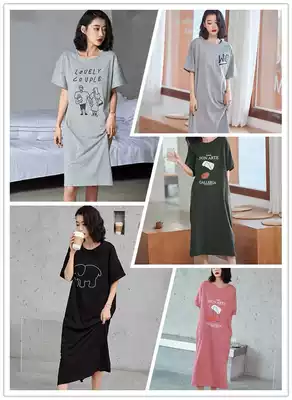 With chest pad nightgown women cotton short sleeve spring summer 2021 new casual loose medium and long version T-shirt long skirt wear