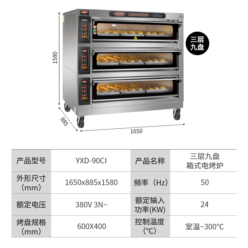 New South Electric Oven Triple Nine Disc Computer Version Numerical Control 90CI Large Capacity Commercial Cake Bread Pizza Oven