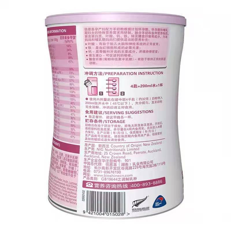 Bioshine Beenxi New Zealand imported maternal goat milk powder low glycemic 400g*2 in the morning and evening of pregnancy