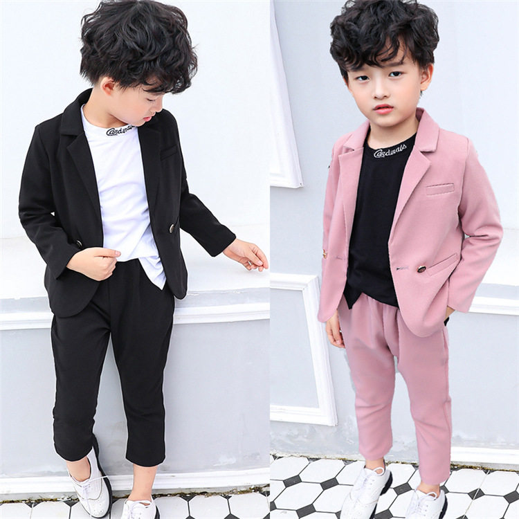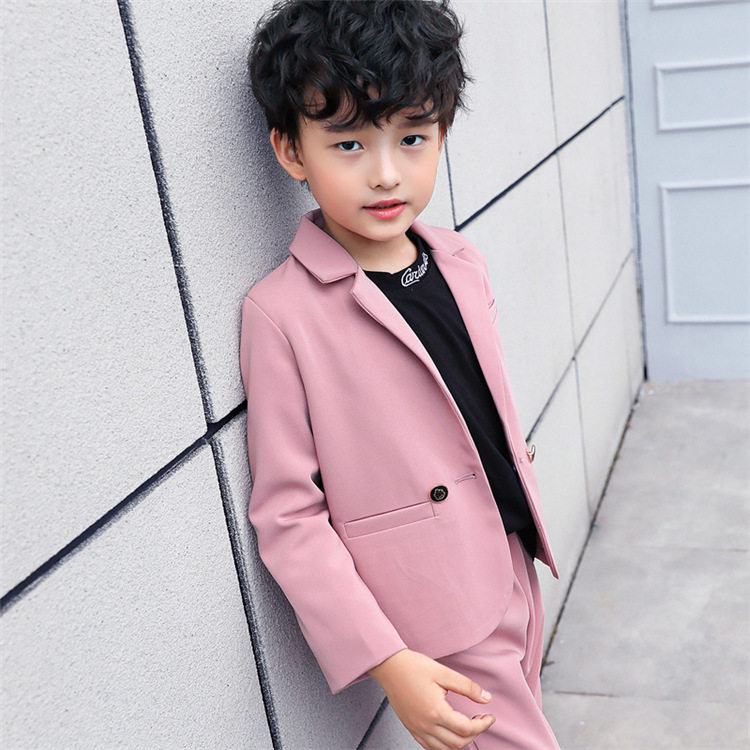 Boys pink suit suit spring and autumn Korean version net red children's casual suit handsome baby one-year-old flower girl dress