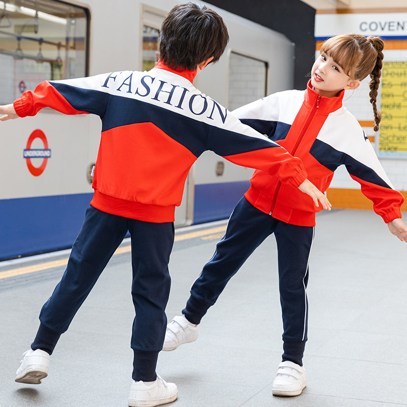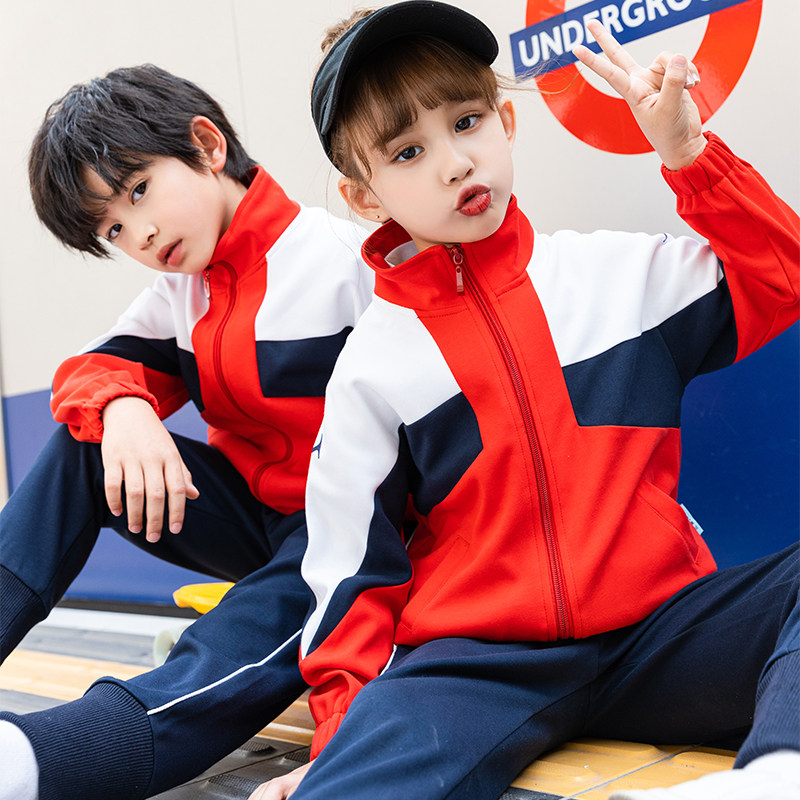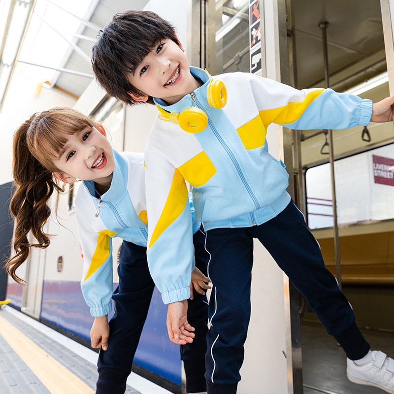 School uniform suit primary school students spring and autumn sports three-piece suit class service sky blue cotton children's kindergarten garden uniform teacher