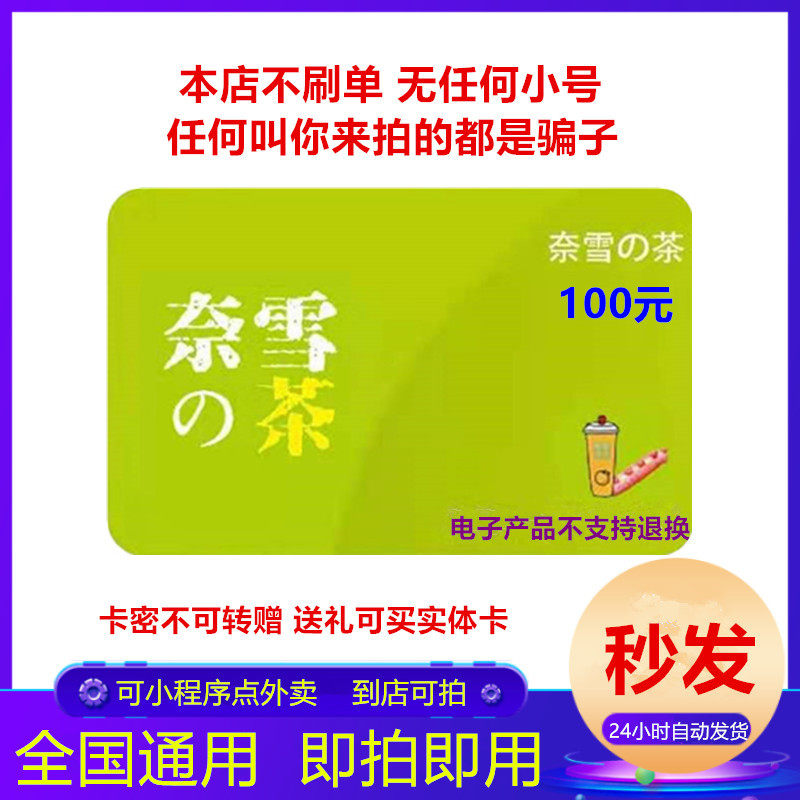 Nay Snow's Tea E-voucher RMB100 Gift Card Voucher Small Program Milk Tea Exchange Code National Universal