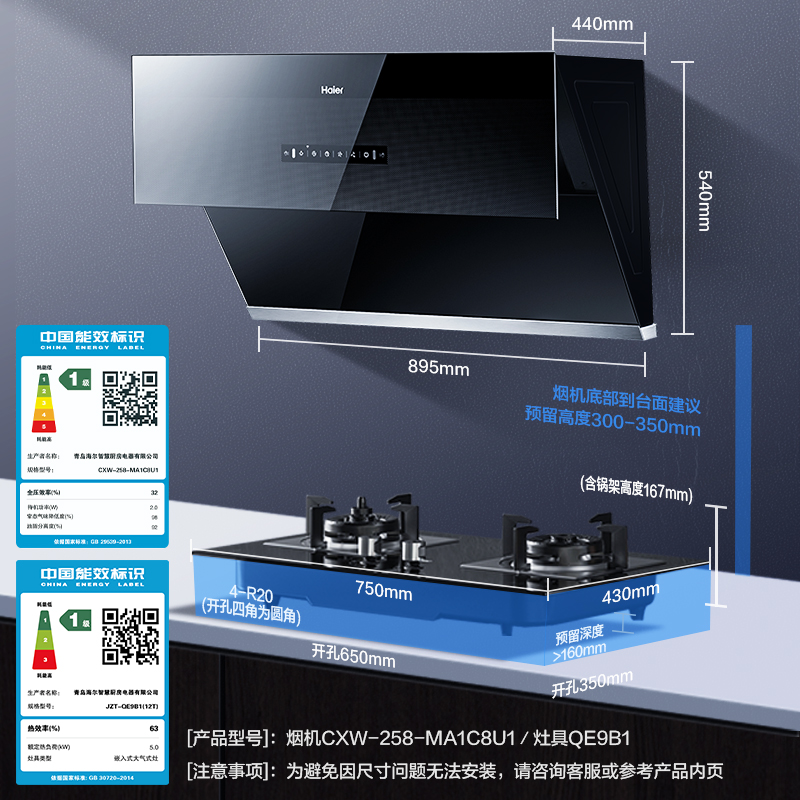 Haier MA1C8 smart cleaning suction range hood small household kitchen large suction side suction official flagship store