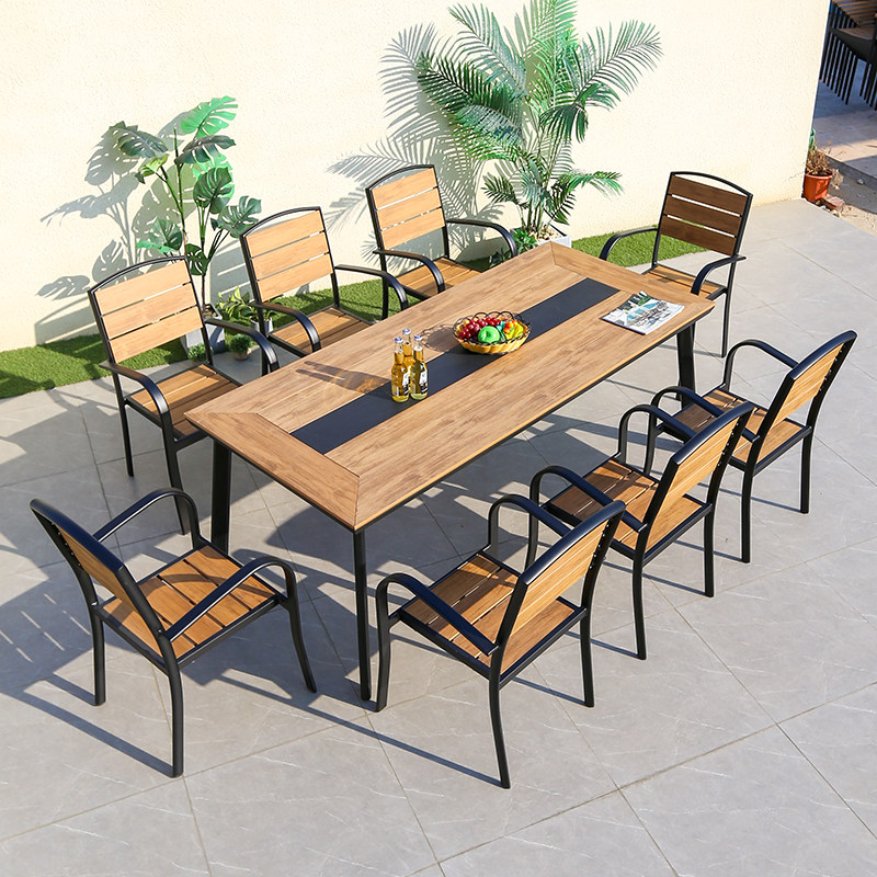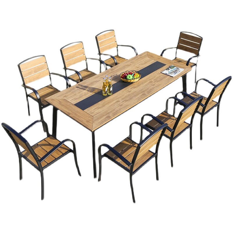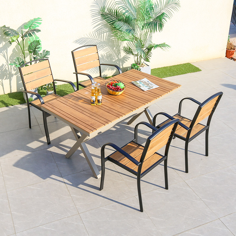 Outdoor plastic-wood tables and chairs leisure outdoor combination open-air garden courtyard anti-corrosion wood balcony tables and chairs European outdoor