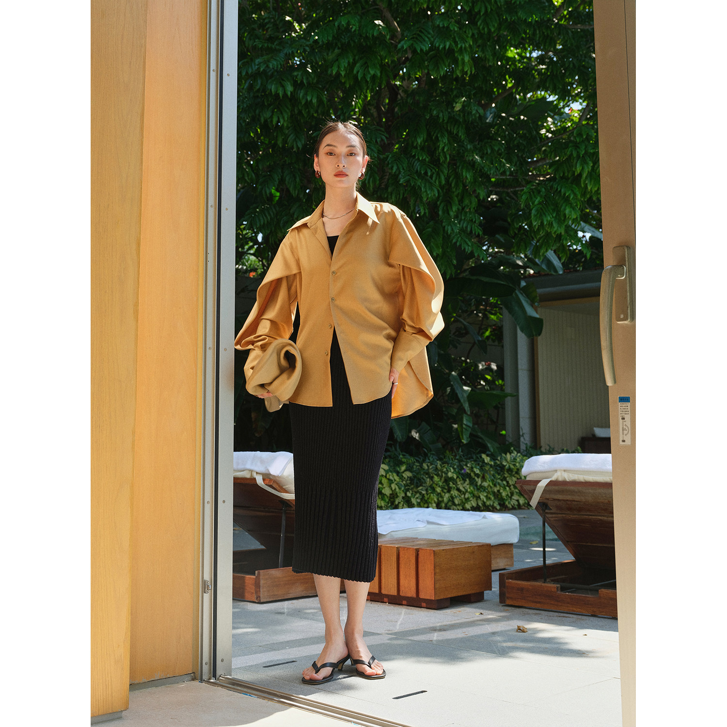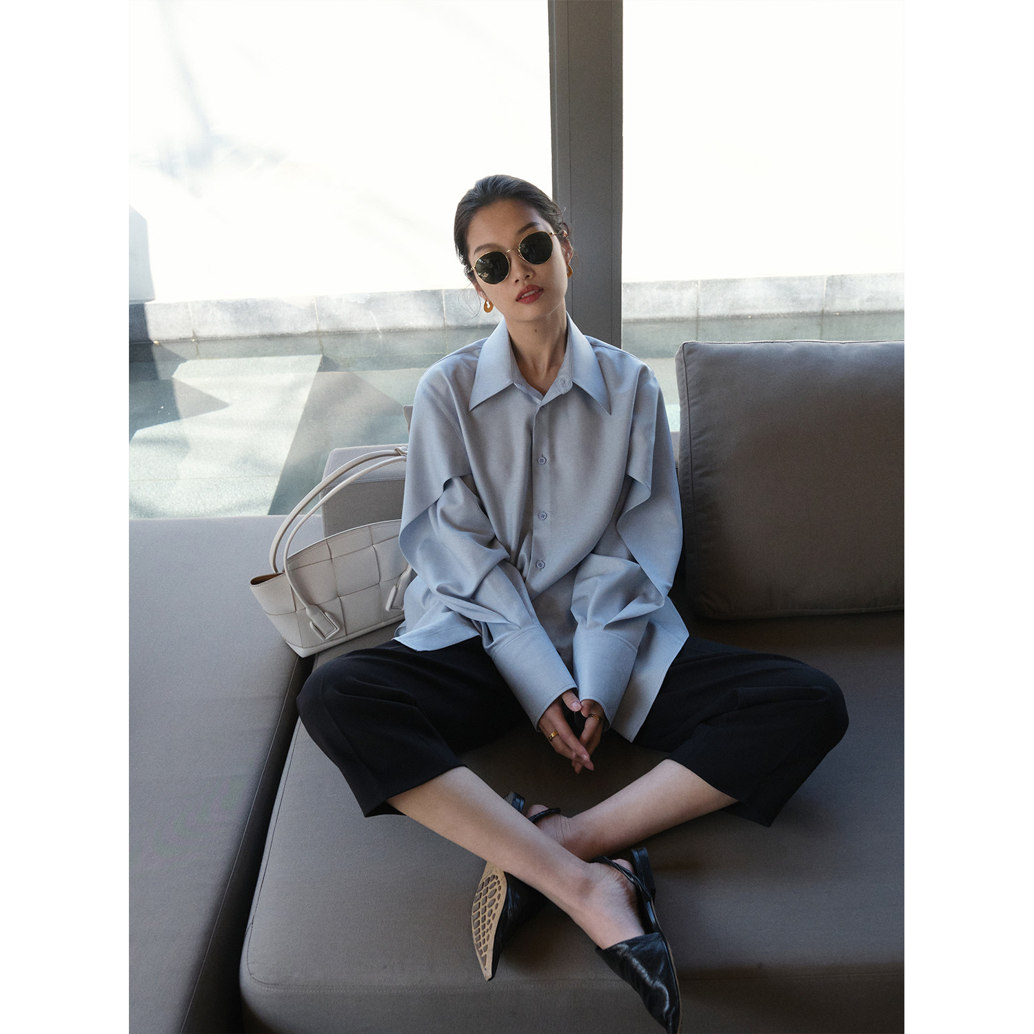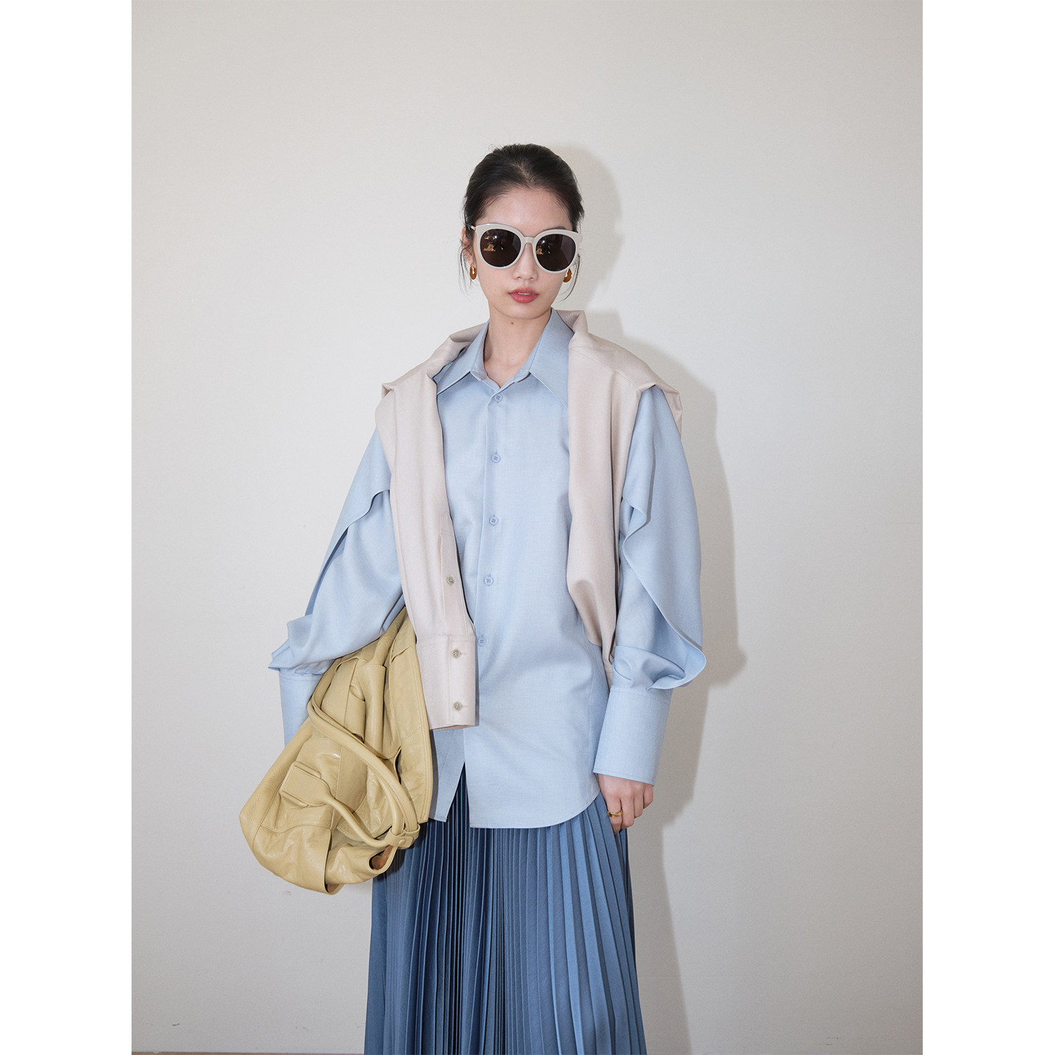 MRS Studios Early Spring New Japanese imported with Bi stacked folds with thin tip collar sunscreen shirts