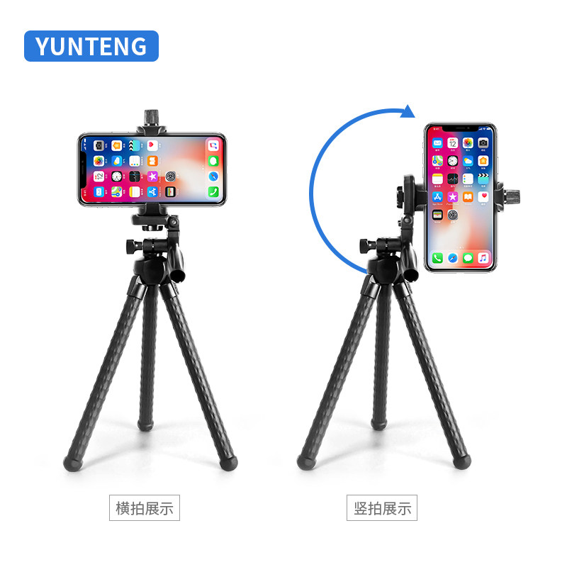 Yunteng 3280 mobile phone rack octatopu tripod camera desktop tabletop tabletop of straight shake handheld holder outdoor single eye filled light lamp vlog small eight grab fish portable triangle
