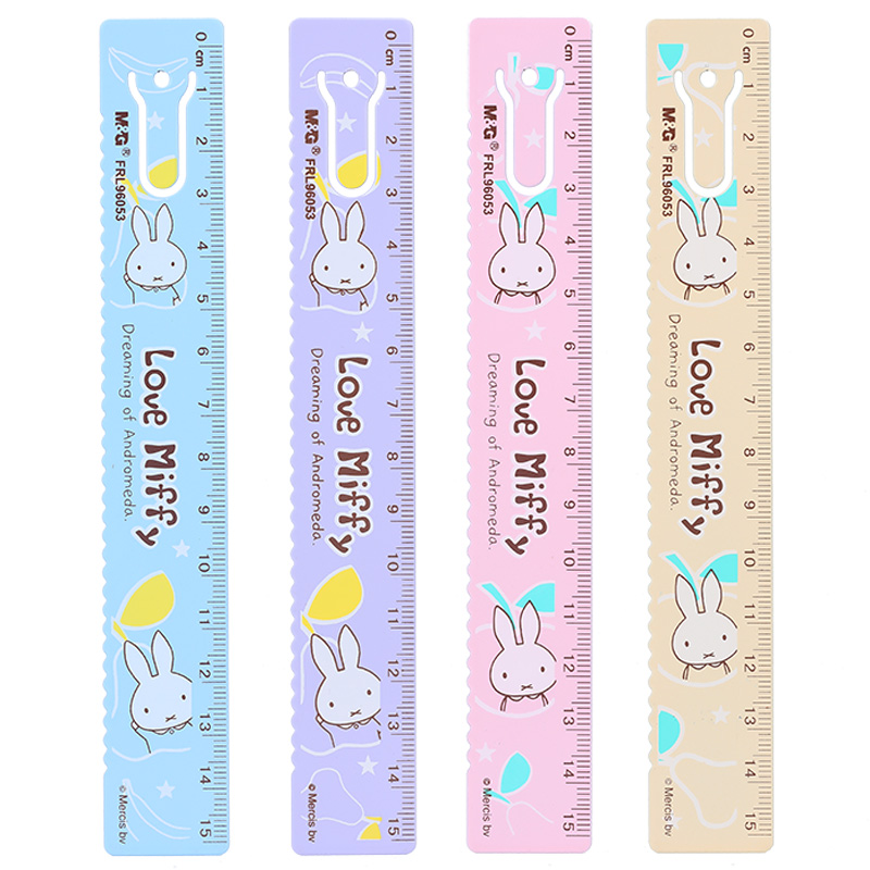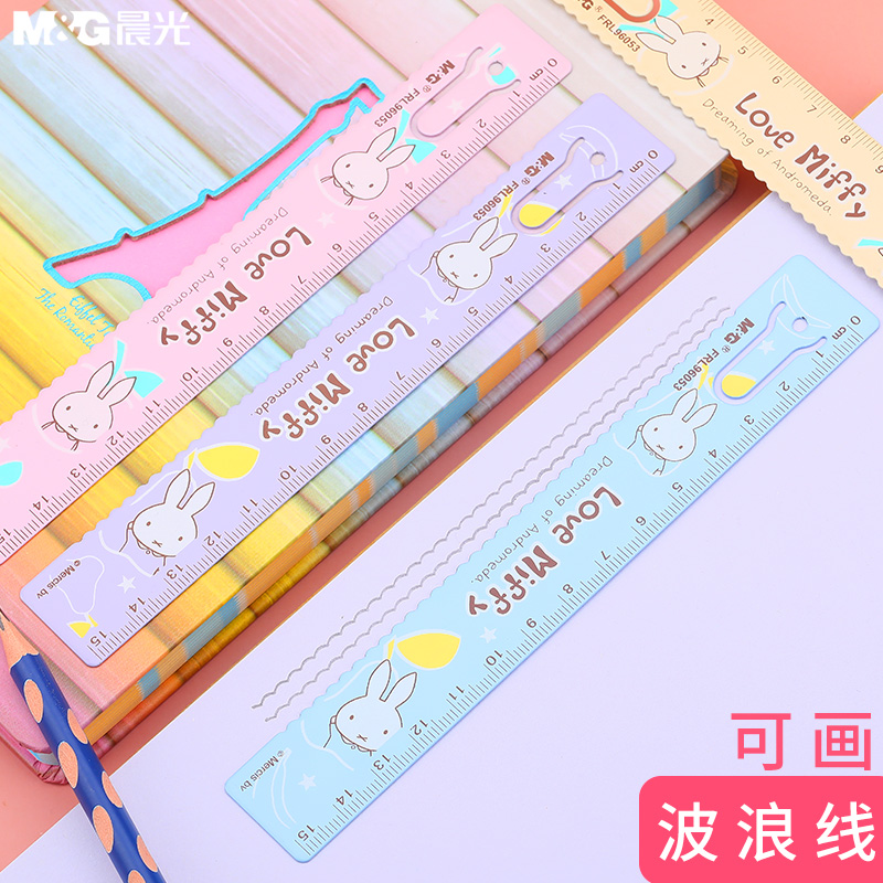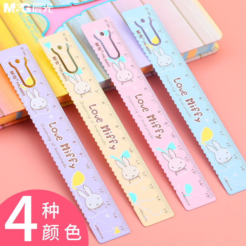 Morning light Miffy 15cm bookmark metal ruler steel ruler Children's cartoon wavy line ruler Student drawing cartographic measurement multi-function scale tool Korean small fresh simple cute stationery