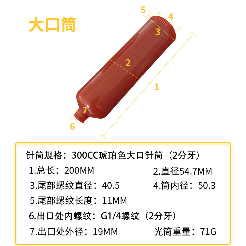 300CC large light cylinder 300CC large cylinder PE piston amber color 300CC large cylinder PE piston amber color 300CC large cylinder with PE piston amber color 30